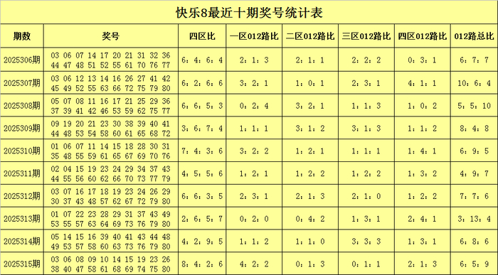 福彩快乐8第2025315期开奖回顾:03 06 08 09 10 14 15 19 23 26 38 40 47 58 61 68 69 74 75 80,其中奖号四区比为8:4:2:6,012路比为6:5:9,和值为743,跨度为77。